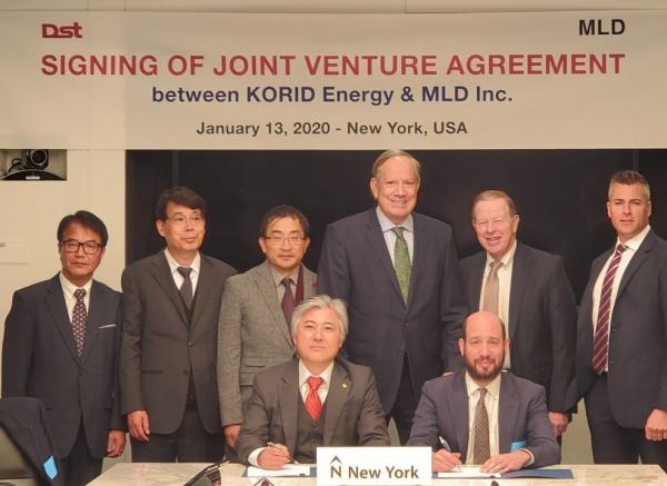 Image: standing from left: Yunki Kim, president, DST, Kyonglock Na, head of R&D,KORID, Jason Kuh, vice-chairman, DST Group, George Pataki, former governor of NY State, John Kerry, president, John Kerry Energy Solutions, Neil Foran, CFO, Margaret Lake. Seated from left: Paul Kim, chairman DST Group and president of KORID, Jared Lazerson, CEO and president of Margaret Lake.