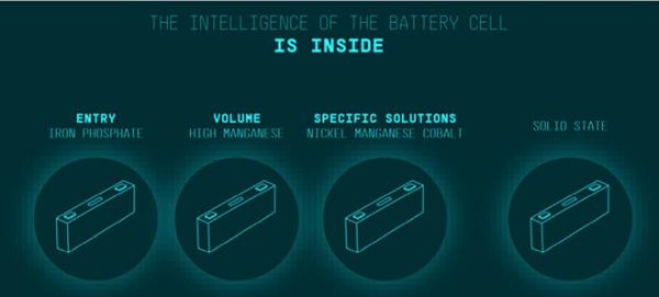 The unified cell will include four chemistries, depending on application: iron phosphate (entry chemistry for cheaper EV models), high manganese (high volume), nickel-manganese-cobalt (for long-range high-performance EVS) and solid state.